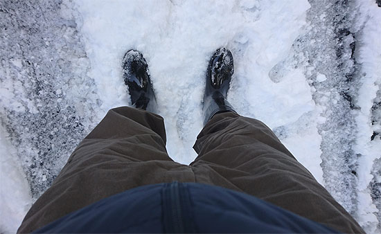 雪道を歩くだけならむしろオーバースペックなくらいですが、それで滑って怪我することを防げるなら割に合います。