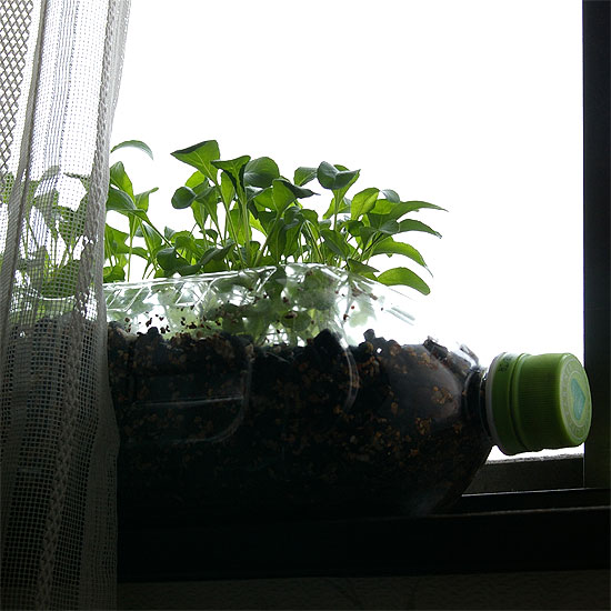 種まきからおよそ1ヶ月を経過して、直接日光を浴びることがそれほどない窓辺でもそれなりに大きくなってきました。