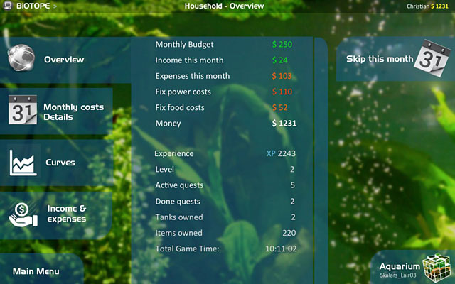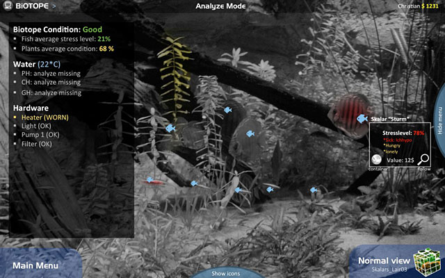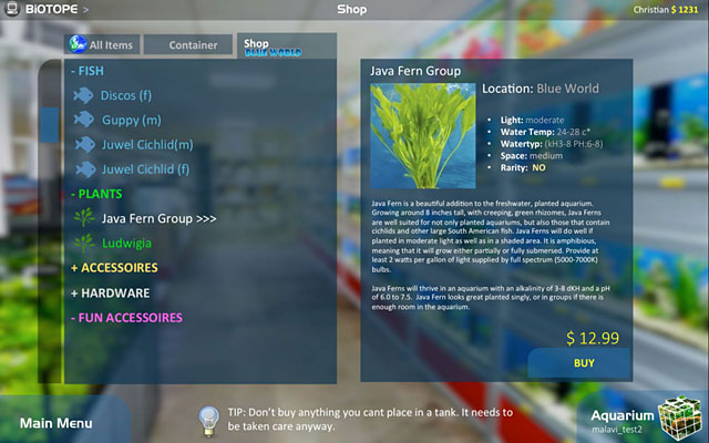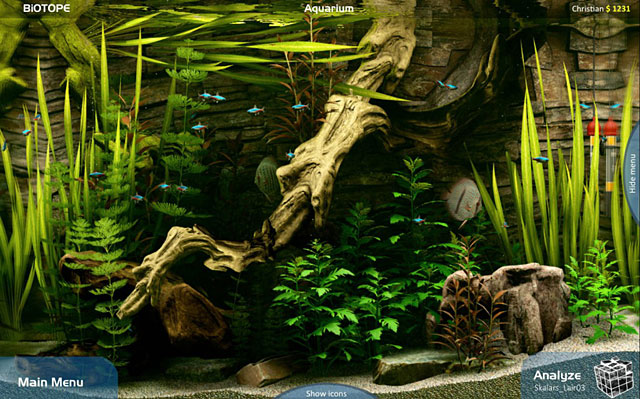 プレイヤーは20~500リットルの水槽を複数所有することができ、その中で魚や水草のライフサイクルを管理するのが目的です。