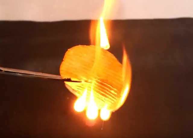 わざわざポテトチップスに着火したい人はいないと思いますが、もし火をつけるなら火の元には十分に注意してください。