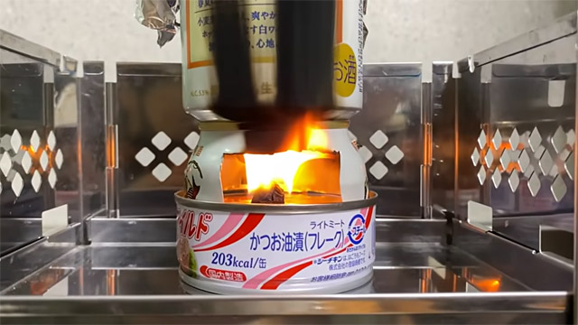 ツナ缶もノンオイルだと火が点きませんし、低カロリーなので非常食としても油漬けの方が適しています。