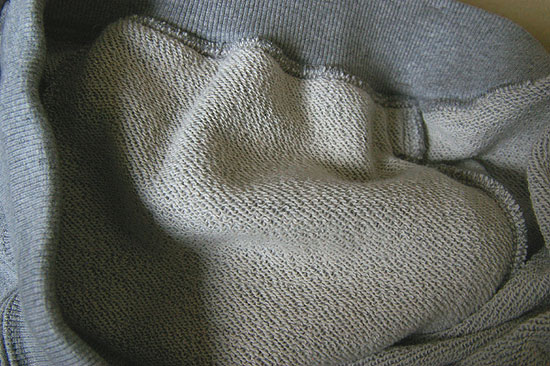本体は綿100%でリブ部分のみポリウレタン5%を含んでいます。ポリウレタンは嫌いですが、リブ部分のストレッチに必要なのでしかたありません。