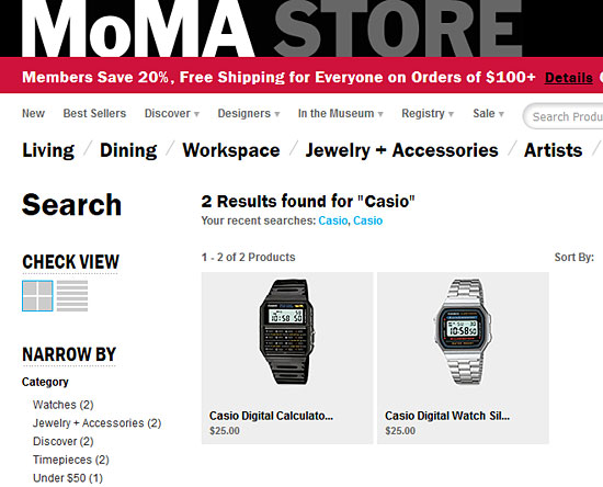 なぜか日本版のMoMA StoreでCASIOと検索してもヒットしないのが悲しいですが、本家のサイトで選ばれているのは日本人として誇らしいですね。