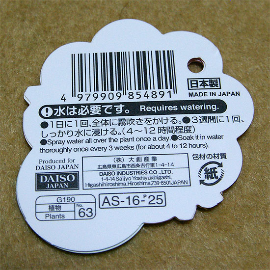 ただどのタグも水やり頻度がすべて同じでした。種類ごとに水やりを調整する必要があると思いますが、ダイソーは園芸ショップではないのでそこまで気を配ってはいません。