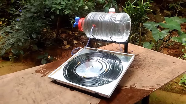 銅管を使った小型のDIY太陽熱温水器は電気ガスなしで効率的にお湯が作れる装置