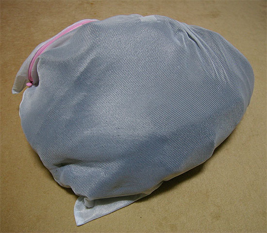 ポーラテックは耐久性があり毛玉が出来にくい素材ですが念のため保護しておきます。仕上げに静電気を抑えるため柔軟剤も入れました。