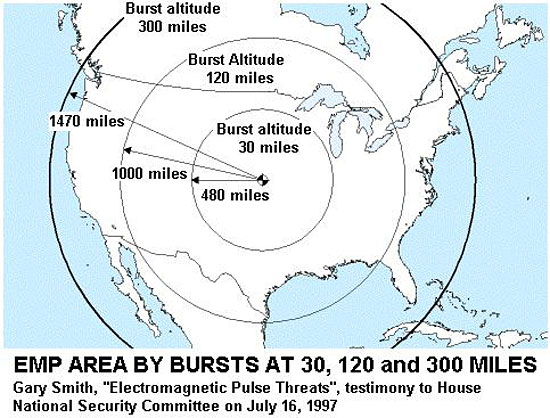 しかし核ミサイルによる地上攻撃よりも遥かに恐ろしいとされるのが、高度上空で核爆発を起こしそれによって発生する電磁パルス (Electromagnetic Pulse)で電力インフラや通信・情報装置を機能不全にする電磁パルス (EMP)攻撃です。