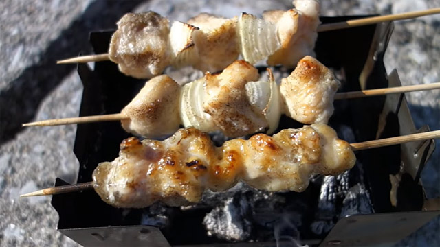 ただし炭火に関してはスモールサイズではなくラージサイズのポケットストーブを使用しており、その方が焼き鳥の串を置いて焼きやすいのでしょう。