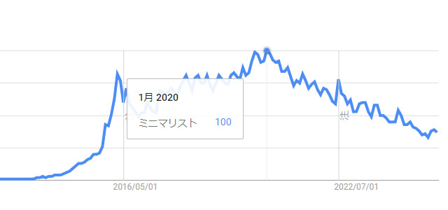 ミニマリストのトレンドとしては2015年がピークかと思っていましたが、2020年1月に最高潮に達してその後急降下しています。