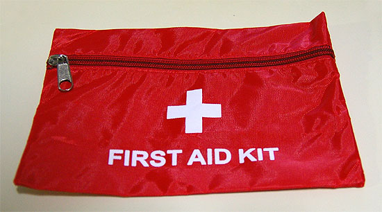 いろいろ入った他人のポーチの中から瞬時に必要なモノを見つけるのは困難です。ファーストエイドキットをカバンに入れておけば、取りあえず「カバンの中の赤い袋持ってきて」と指示することができます。