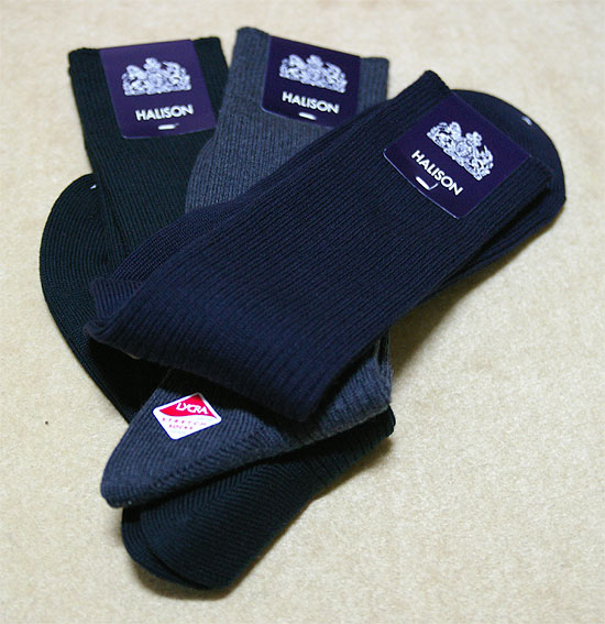 なぜハリソンを選んだかというと以前ロングホーズというスーツ用の靴下を買ったことがあり、それがたいへん履きやすく丈夫で使用頻度は少ないもののいまだ現役なのでカジュアルソックスも試してみようと思いました。