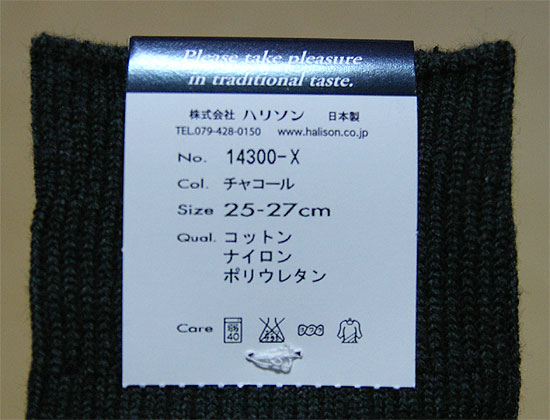 今回買ったのはHALISON (ハリソン) トルファン綿 リブ ミドルゲージ ソックスという商品です。