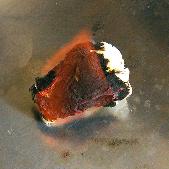 ティッシュペーパーだけだとすぐに燃え尽きてしまいますが、手ピカジェルを染みこませたことでジワジワと長い間燃え続けました。
