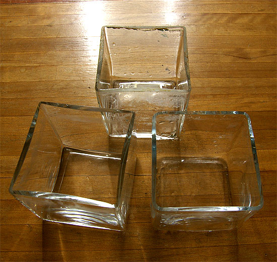以前観葉植物を植えていたガラス容器がいくつか余っていたのでハーブ栽培に使うことにしました。