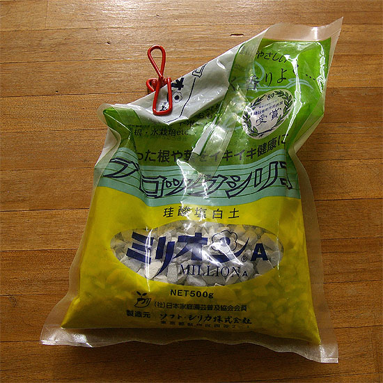 これから気温が上がると水が痛みやすくなるので、根腐れ防止剤としてソフトシリカ ミリオンA (珪酸酸塩白土)があると心強いです。ゼオライトと成分はほとんど同じだと思うのでゼオライトでもよいでしょう。