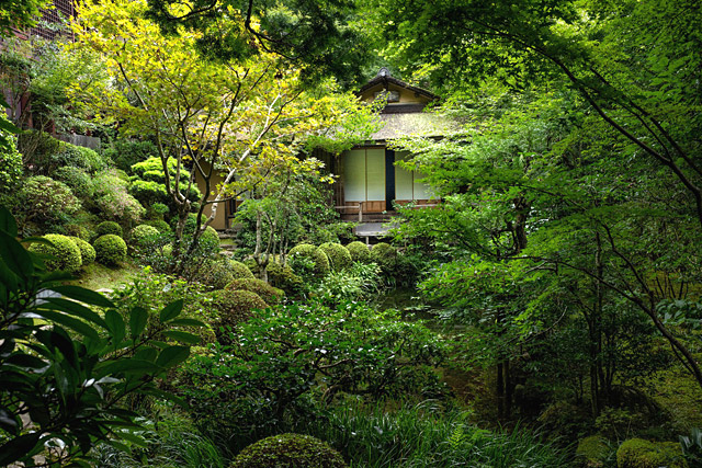 外国人客を意識した派手でダイナミックな造形の日本庭園が増えていますが、京都は地味な印象の中に繊細な造形美や侘び寂びを含んでいます。