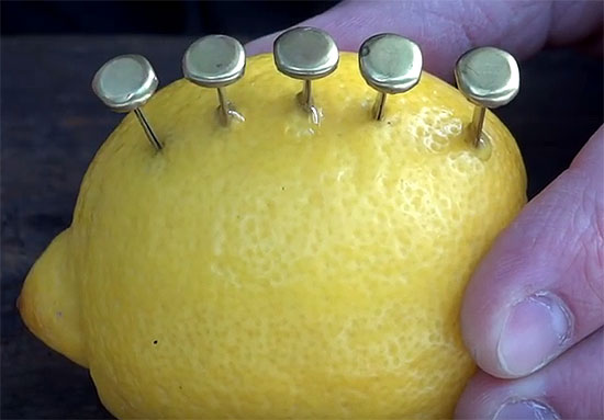 次に銅製のクリップを6本レモンに突き刺していきます。