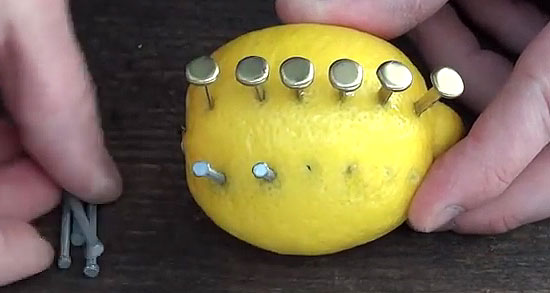 スチールウールを発火させるだけの電力を得るにはそれだけのレモンが必要だということですが、たったレモン1個だけで発火できる事実を知った後では滑稽でしかありません。