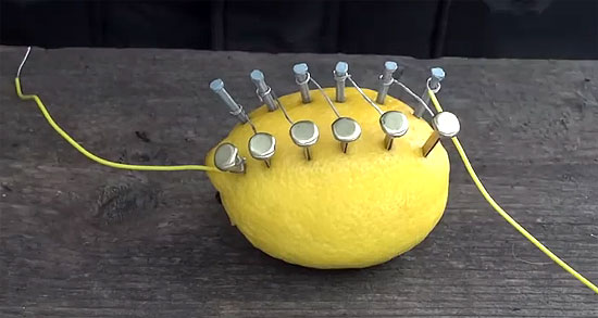 レモンに銅板とアルミ板を刺して電気が発生する原理を応用したレモン電池なら聞いたことがあるかもしれません。