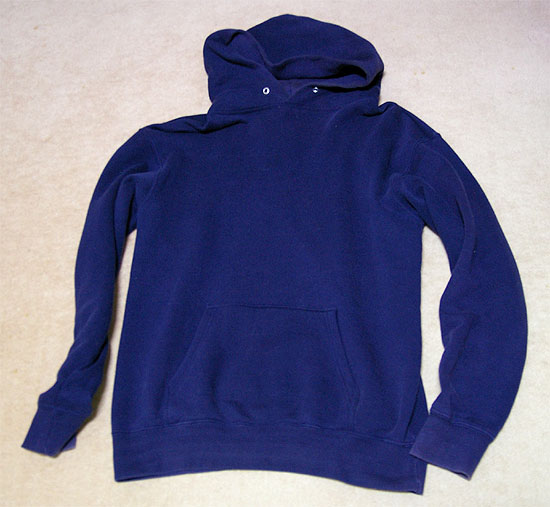 私の部屋には暖房と呼べるものが電気マットくらいしかないので室内でも寒い日は着込みます。このネイビー色のパーカーはいっけん普通のパーカーと変わりませんが、たしかスウェーデン軍のミリタリーものだった記憶があります。かなり昔に買ったのですが、耐久性が他のスウェット系とは別格でした。