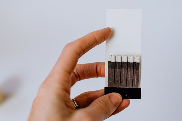 ブックマッチは薄型で広告を印刷しやすくお店によく置かれていたのもうなずけますが、マッチとしては芯が柔らかいので普通のマッチ棒よりも安定感に欠ける部分があります。