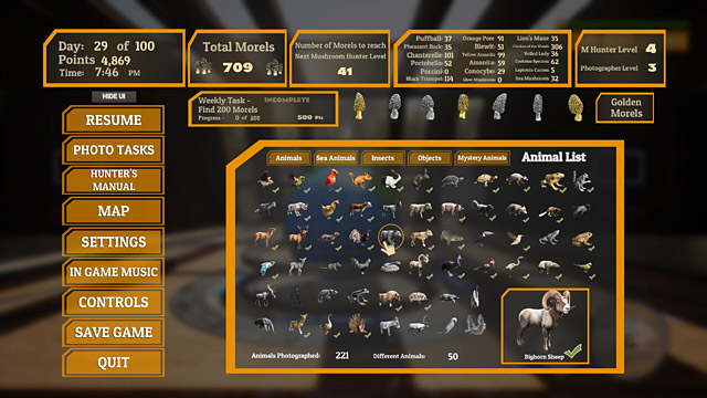 Morels: The Hunt 2 キノコ狩りと野生生物の写真撮影がテーマの癒し系アドベンチャーゲーム