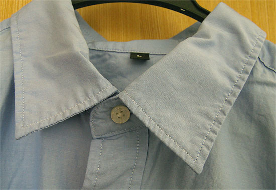 洗いざらしでこなれた感じのカジュアル向けシャツなので、ステッチに沿って細かいシワが入り、ほどよくラフな仕上がりになっています。