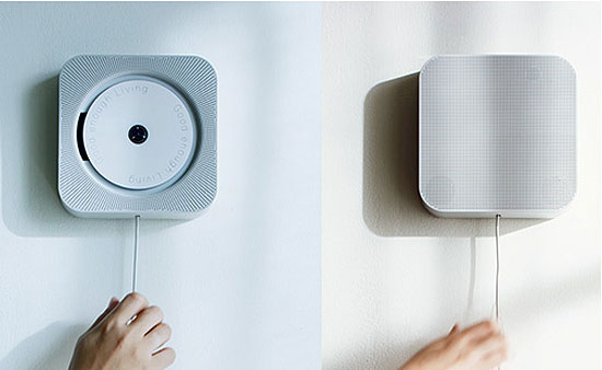 ありそうであまり見かけない壁掛け式のCDプレイヤー。フタすら無く回転するCDが丸見えですがこのシンプルさが逆に目を引きます。