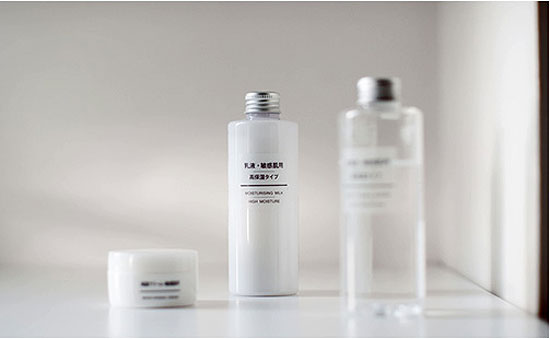 無印良品のスキンケア用品は評判がよく、入れ物も極めてシンプルなため洗面所に並べておいても悪目立ちしません。