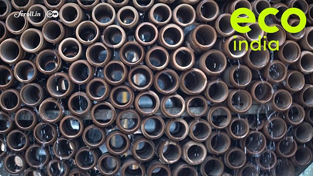 陶器の筒に水をかけ自然風による気化熱で冷却するインド発のエコクーラー