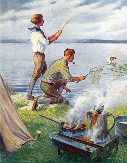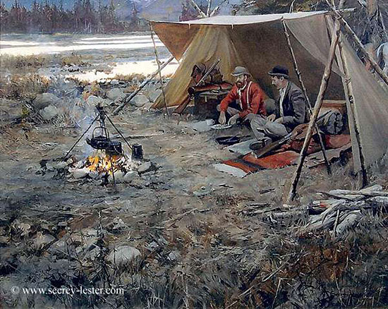 野外で生活道具を持ち込んでキャンプするという非日常的な行為は、自然と人間との距離が極めて近くアートの題材としても絵になる光景なので様々な画家が制作した作品が残されています。