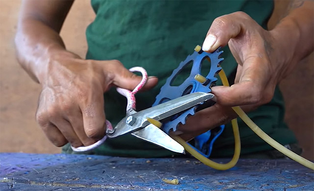 材料も特別なものではなく使い古された自転車のペダルとギアクランクをほぼそのまま利用しています。