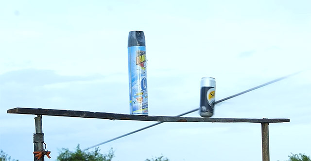 シンプルな構造ですが金属の缶をたやすく貫通するほどの威力と精度を兼ね備えています。