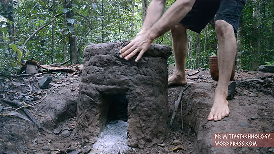 その辺の粘土に枯れ葉などの植物繊維を混ぜて器用に土台から炉を作り上げます。