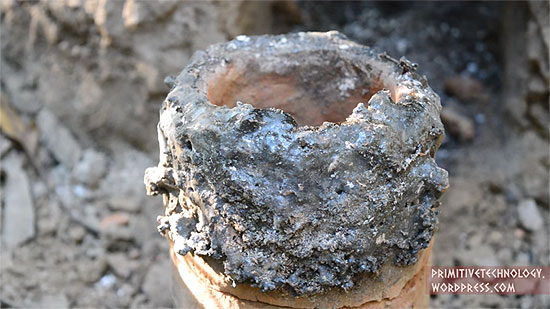 鉄の融点が1,538°Cなのでこんな手作りの炉でもそれほどの高温に達するということでしょう。