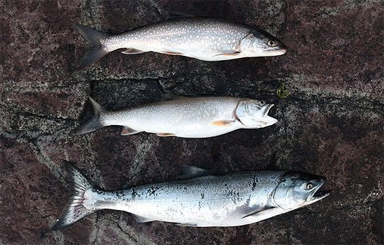 釣りや網でかかる魚も淡水に生息するサーモンやトラウト類が多く見られます。