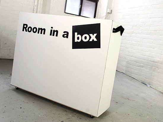 電車やバスにも軽くて持ち運び可能な組み立て式ダンボール家具セット Room in a Box