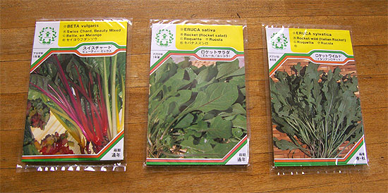 買ったのはロケットサラダ (ルッコラ)・ロケットワイルド (ワイルドルッコラ/セルバチコ)・スイスチャード (フダンソウ)です。