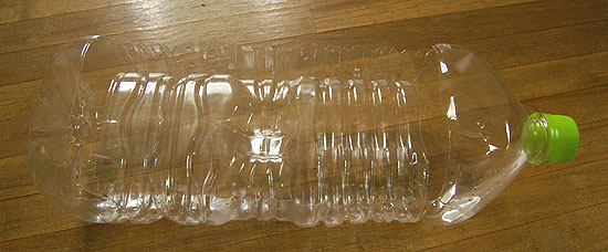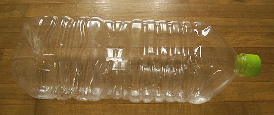 今回はGREEN DA・KA・RA (2L)のペットボトルを使います。薄くて凹みやすいですがその分加工がしやすく、側面が平らで安定しそうです。