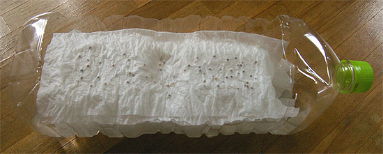 ロケットサラダ (ルッコラ) の種まき ペットボトルとキッチンペーパーだけで野菜は育つのか