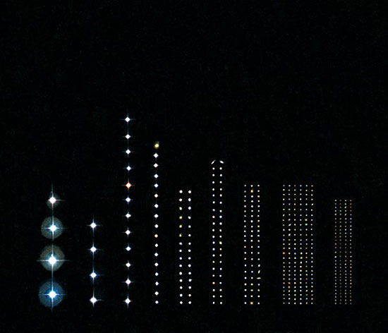 整理すると大小様々な大きさの星が入り交じっていることがわかります。星の大きさや距離や発光度合いで微妙に変化するのでしょう。