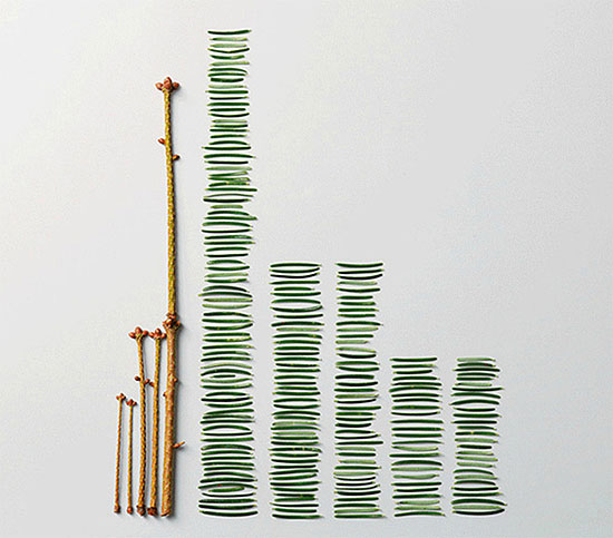 冒頭の松の枝をばらして並べた状態です。これは整理整頓というよりも分解ですね。