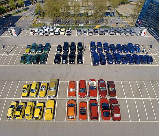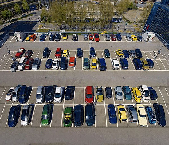 色ごとにグループ分けするだけで新車の在庫かと勘違いしそうです。また寄せ集めるだけでこれだけスペースが空いていたことにも驚きです。