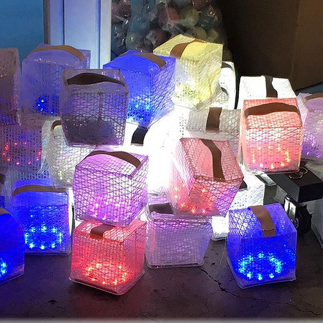 複数のソーラーパフを積み上げてオブジェを作ったり、まるで灯籠のように水面に浮かべたりと普通のLEDランタンでは想像も付かないアイデアが浮かんできます。