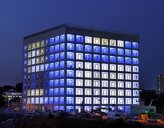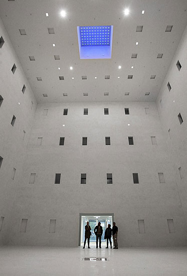 外観も特徴的でこの中が図書館とは言われて見なければ想像付かないでしょう。マス目のようなデザインなので照明の色を変えると何かメッセージも発信できそうです。