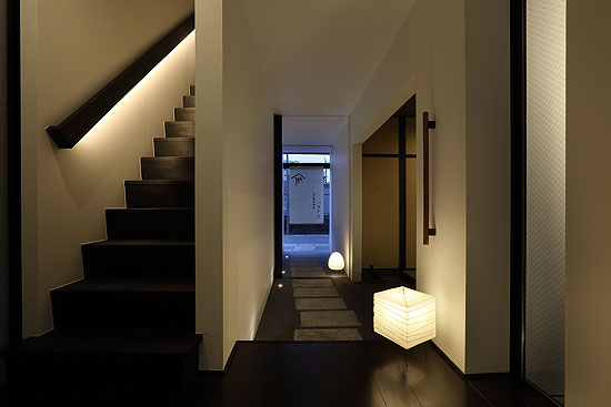 旅館にしてはこじんまりとした佇まいで京都の古くからある町並みに溶け込んむようなデザインが目を引きます。